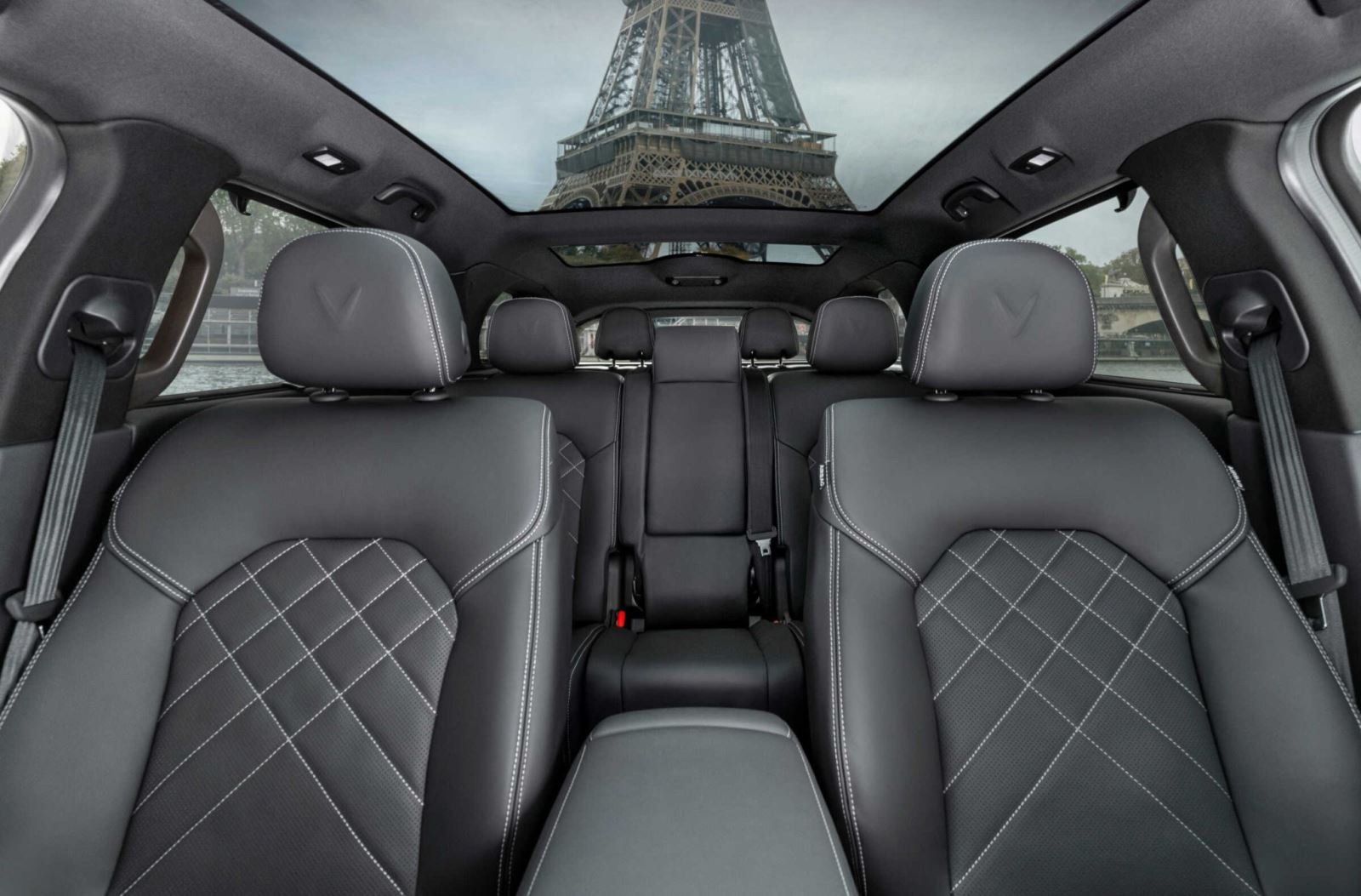 Xe có tổng cộng 6 chỗ ngồi, họa tiết và cách phối màu ghế ngồi kết hợp với tựa đầu có logo V dập nổi dễ liên tưởng tới xe sang.