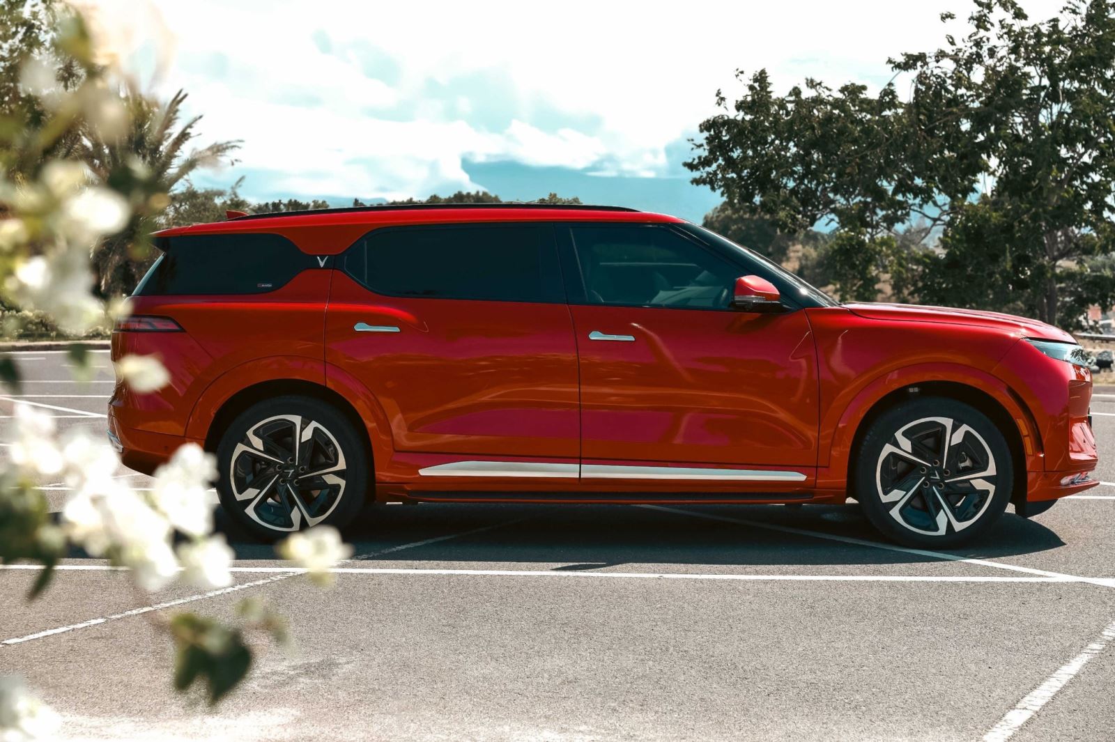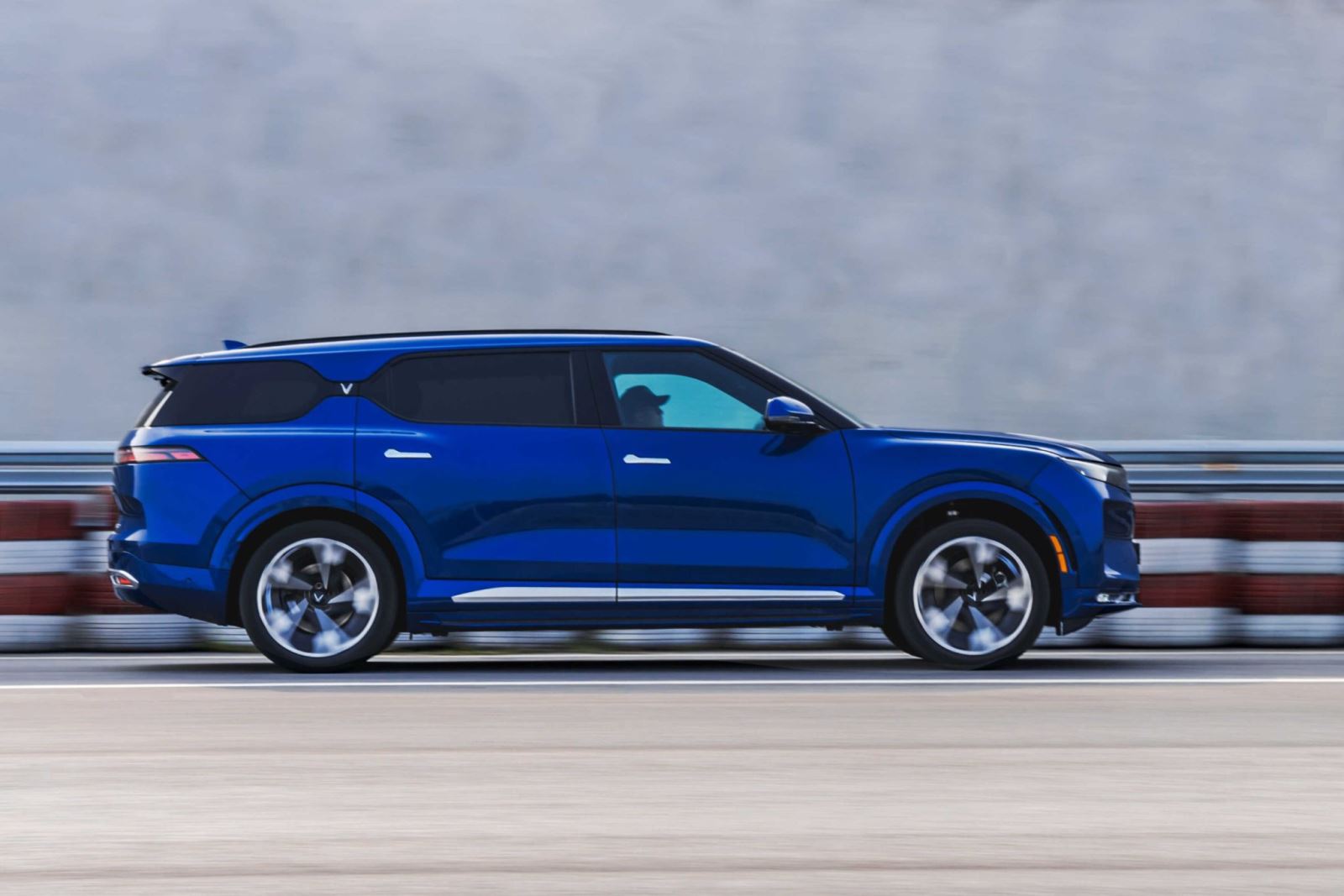 Ngoài ra có 1 điểm thú vị của VinFast VF9 là phần kính ở hông xe được tách làm 2 ở cột C bởi logo chữ “V” của VinFast